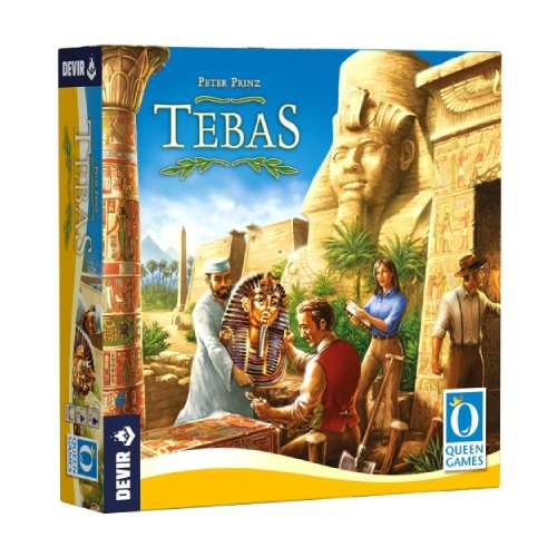 Obra de Peter Prinz, Tebas permite partidas para 2 personas o grupos de hasta 4 jugadores, a partir de 8 años, de unos 60 minutos de duración. Con una mecánica principal de set collection, el objetivo de los jugadores será conseguir el mayor número de puntos de victoria excavando en distintos sitios arqueológicos del mundo y consiguiendo valiosos artefactos.